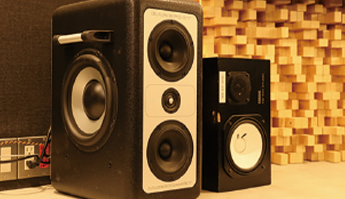 レコーディング・ミキシングだけでなく、マスタリング現場でも信頼の高いスピーカーを導入。ノブを切り替えるだけで別スピーカーの音も再現できます。
