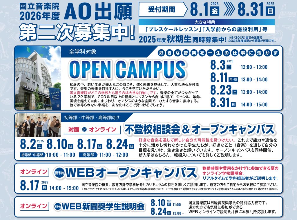 8月17日(日)14:00~15:00<WEBオープンキャンパス>