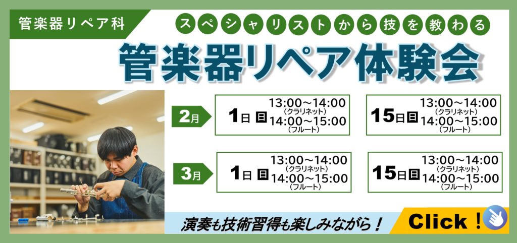 <関連学科>:管楽器リペア科・ウインドオーケストラ科・高等部