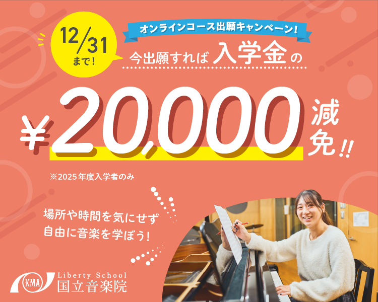 【すぐに学び始めたい方向け!】オンラインコース学費減免キャンペーン!学びたかった音楽を今オンラインで!