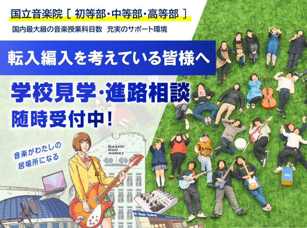 現在の在籍校での状況(出席・成績・その他通学状況など)をお聞きしながら、国立音楽院 初等部・中等部・高等部のしくみ、通い方、費用、単位引継ぎについてなどをご説明します。 -